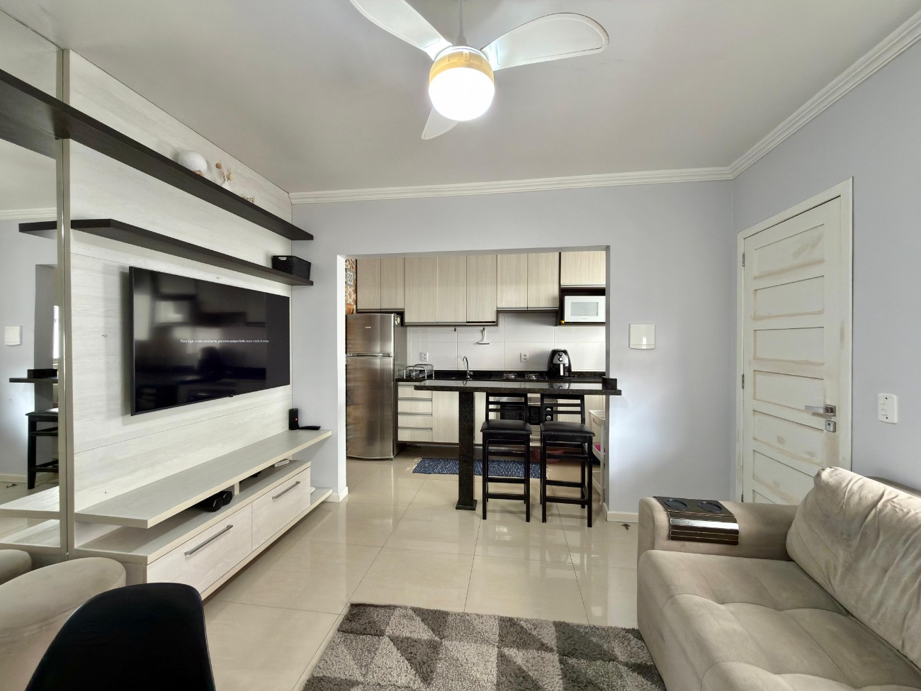 Apartamento à venda em Capão da Canoa, composto por um dormitório, banheiro social, living integrado aos ambientes de estar e jantar, cozinha americana e sacada de fundos. O imóvel encontra-se mobiliado, conta com piso em porcelanato, ar-condicionado instalado e possui 40,86 m² de área privativa, em edifício com salão de festas e churrasqueira.