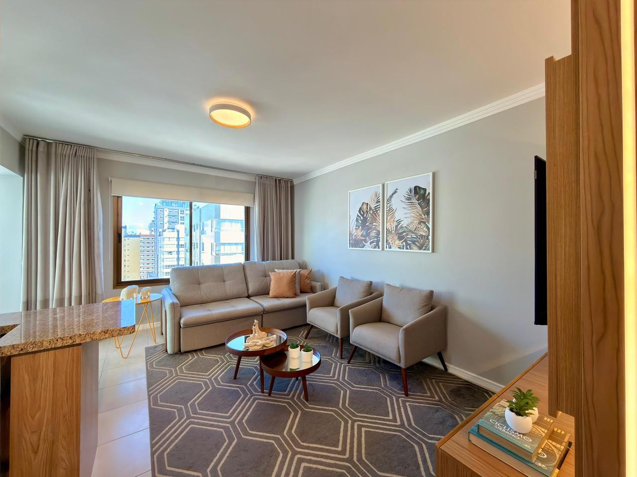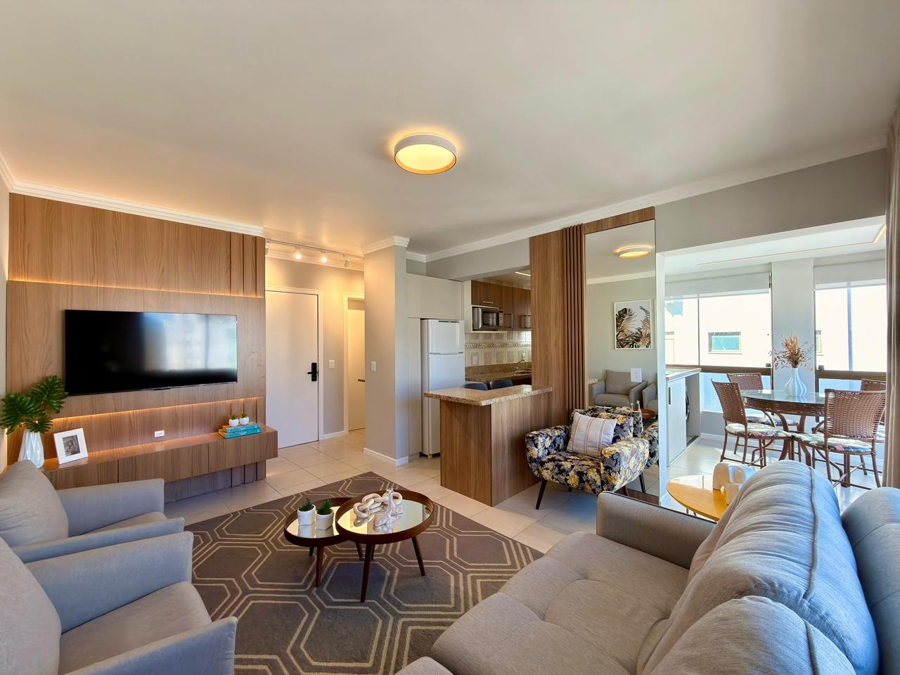 Apartamento à venda localizado a uma quadra do mar, composto por um dormitório, banheiro social e uma vaga de garagem, com living integrado, churrasqueira junto à sacada e vista para o mar. O imóvel está mobiliado e decorado, com eletrodomésticos de primeira linha e climatização por splits em todos os ambientes, contando com 59 m² de área privativa.