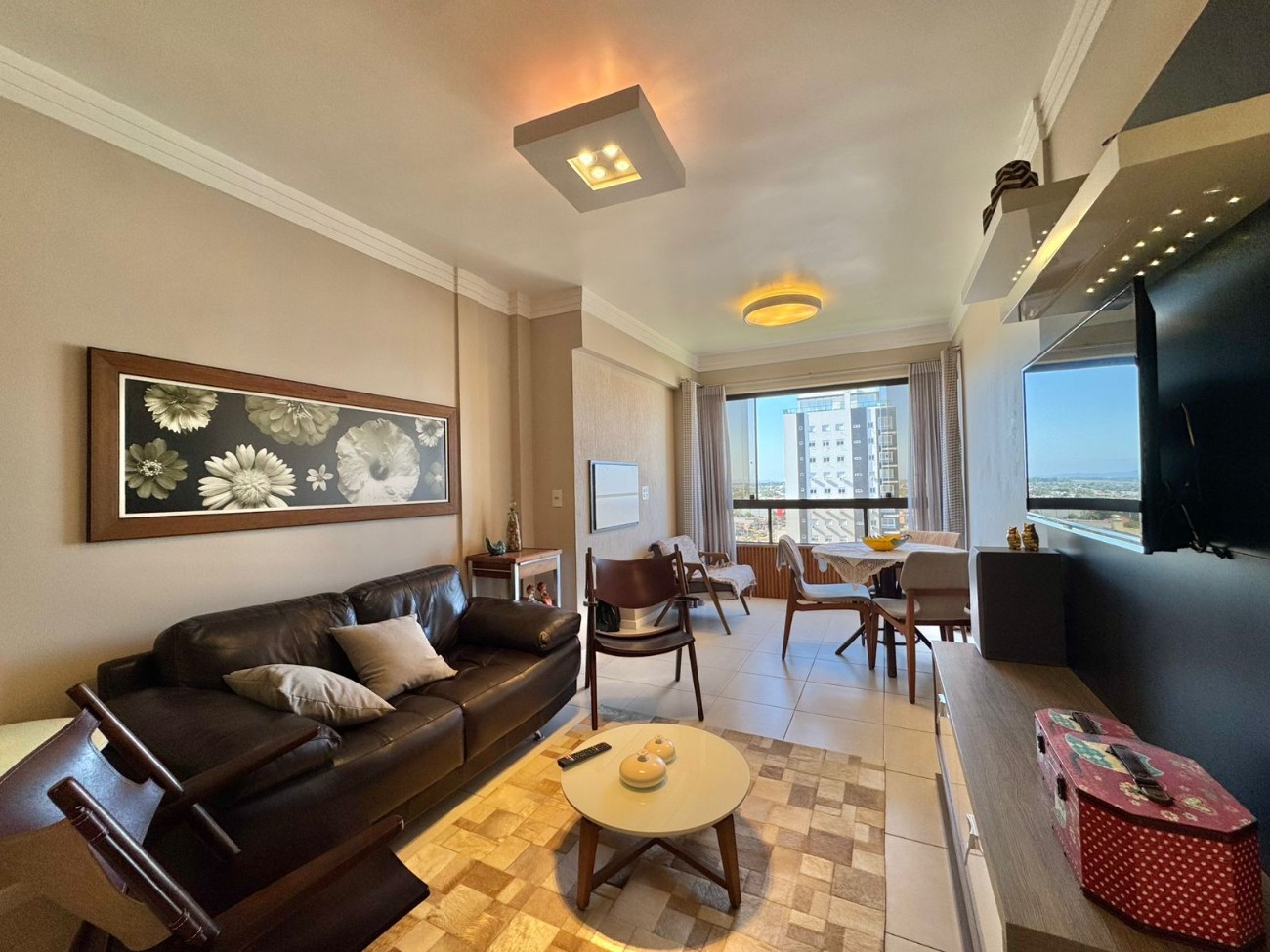 Apartamento à venda em Capão da Canoa, localizado de frente para a praça, composto por dois dormitórios, sendo um deles suíte, com amplo living integrado, sacada com churrasqueira e vista para o mar e serra. O imóvel encontra-se mobiliado e decorado, equipado com eletrodomésticos e splits instalados em todos os ambientes, além de contar com box duplo no térreo.