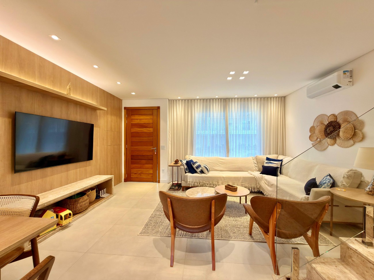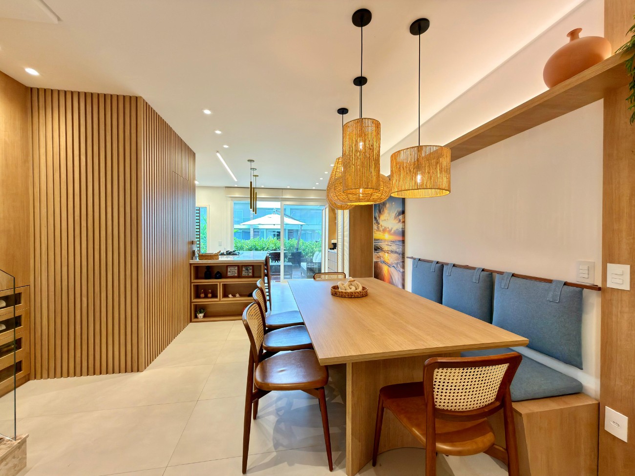 Sobrado à venda no Condomínio Murano, à beira do lago. O imóvel está mobiliado e decorado, com três dormitórios, sendo uma suíte com sacada, lavabo, living integrado, cozinha americana com bancada e churrasqueira, pátio com deck e paisagismo, área de serviço fechada, ambientes climatizados e vaga para dois veículos, em condomínio com infraestrutura completa, incluindo piscinas, salões de festas, espaço gourmet, academia e praia particular com paradouro à beira-mar, com 143,33 m² de área privativa.