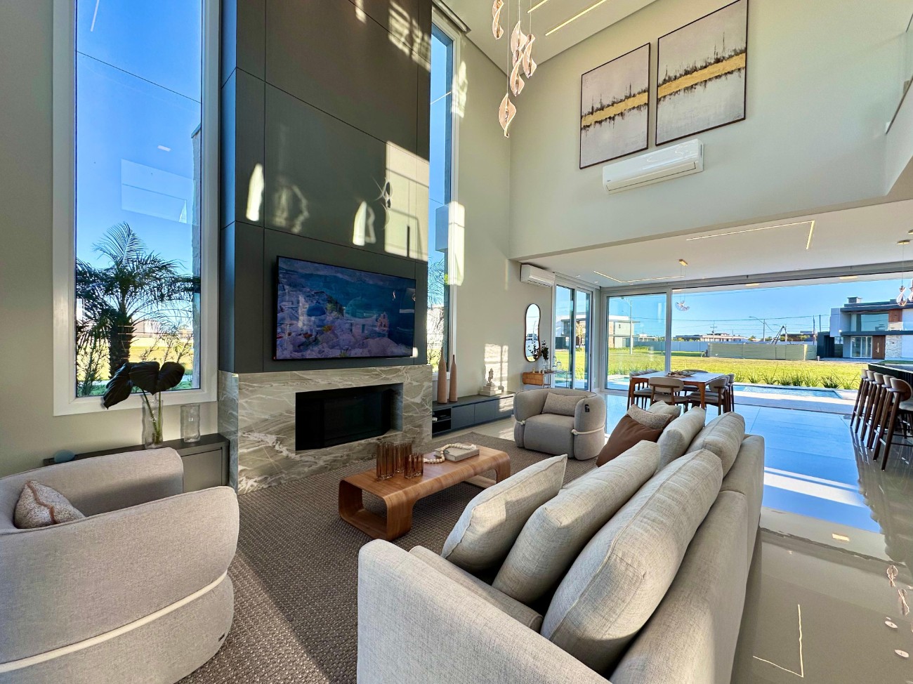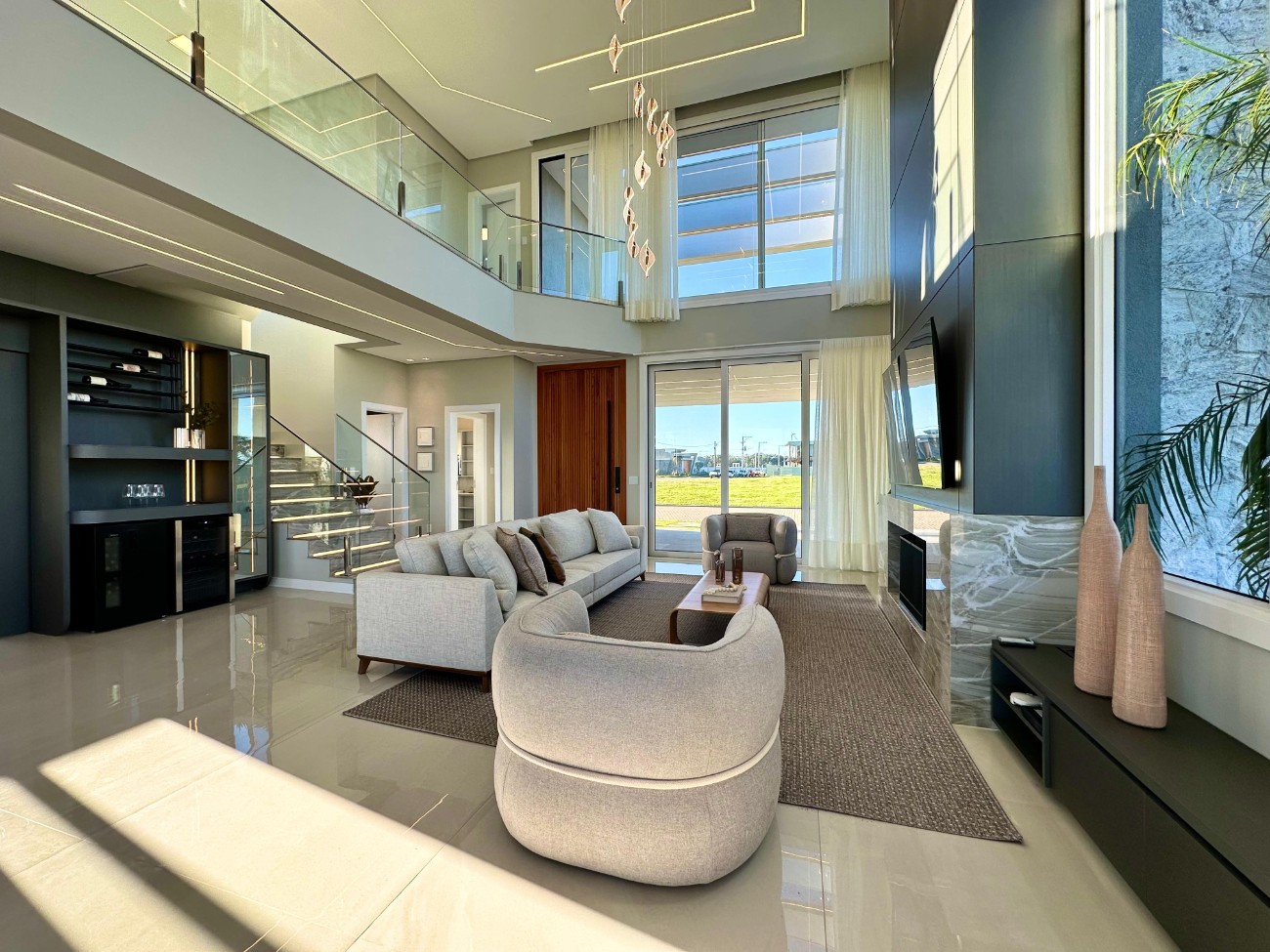 Sobrado à venda no Condomínio Amare Resort, composto por quatro suítes com sacadas e vista para o lago. Living integrado com lareira, cozinha americana com espaço gourmet, sala de TV, automação por Alexa e aquecimento de piso nos dormitórios e banheiros. Área externa com piscina automatizada com prainha. Garagem para dois carros, com espaço para mais dois na rampa, totalizando 362 m², em condomínio com paradouro à beira-mar, piscinas, salões de festas, salas de jogos, brinquedoteca, salão de beleza, academia e sauna.