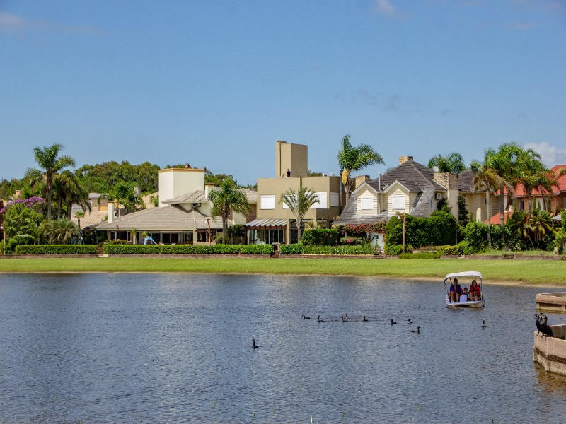 O Atlântida Lagos Park é um condomínio fechado consolidado no litoral norte, reconhecido por seu posicionamento de alto padrão, infraestrutura completa e tradição em Atlântida. Implantado em uma das regiões mais valorizadas da praia, o empreendimento destaca-se por integrar lazer, segurança e planejamento urbanístico em um ambiente estruturado para uso permanente ou sazonal. O condomínio é pioneiro ao oferecer lagos planejados, sendo o único da região com lago destinado à prática de esportes náuticos, além de espaços voltados a atividades ao ar livre e esportes diversos. A infraestrutura contempla sistema de segurança com vigilância 24 horas, múltiplas quadras de tênis, incluindo opções sintéticas e de saibro cobertas, quadras de paddle abertas e cobertas, campos de futebol em grama, um deles integrado a espaço com churrasqueira, além de quadras poliesportivas distribuídas pelo complexo. A área social conta com clube com salão de festas, restaurante em funcionamento durante o verão e feriados prolongados, piscina adulto e infantil, academia equipada, playgrounds e praças integradas às áreas verdes. O lazer é complementado por uma praia artificial com toboágua e cascata, além de lagos destinados tanto à prática de esqui aquático quanto a passeios recreativos com caiaques ou botes. O Atlântida Lagos Park reúne localização estratégica, infraestrutura ampla e um projeto que valoriza o convívio, o esporte e a segurança, mantendo-se como uma das referências entre os condomínios fechados do litoral gaúcho.