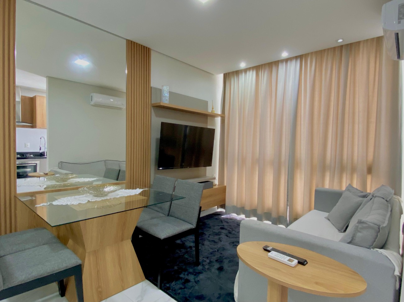 Apartamento à venda no bairro Navegantes, composto por um dormitório, banheiro social e uma vaga de garagem. O imóvel encontra-se mobiliado e decorado, com eletrodomésticos instalados e splits em todos os ambientes, além de piso em porcelanato em todos os cômodos e esquadrias em PVC.