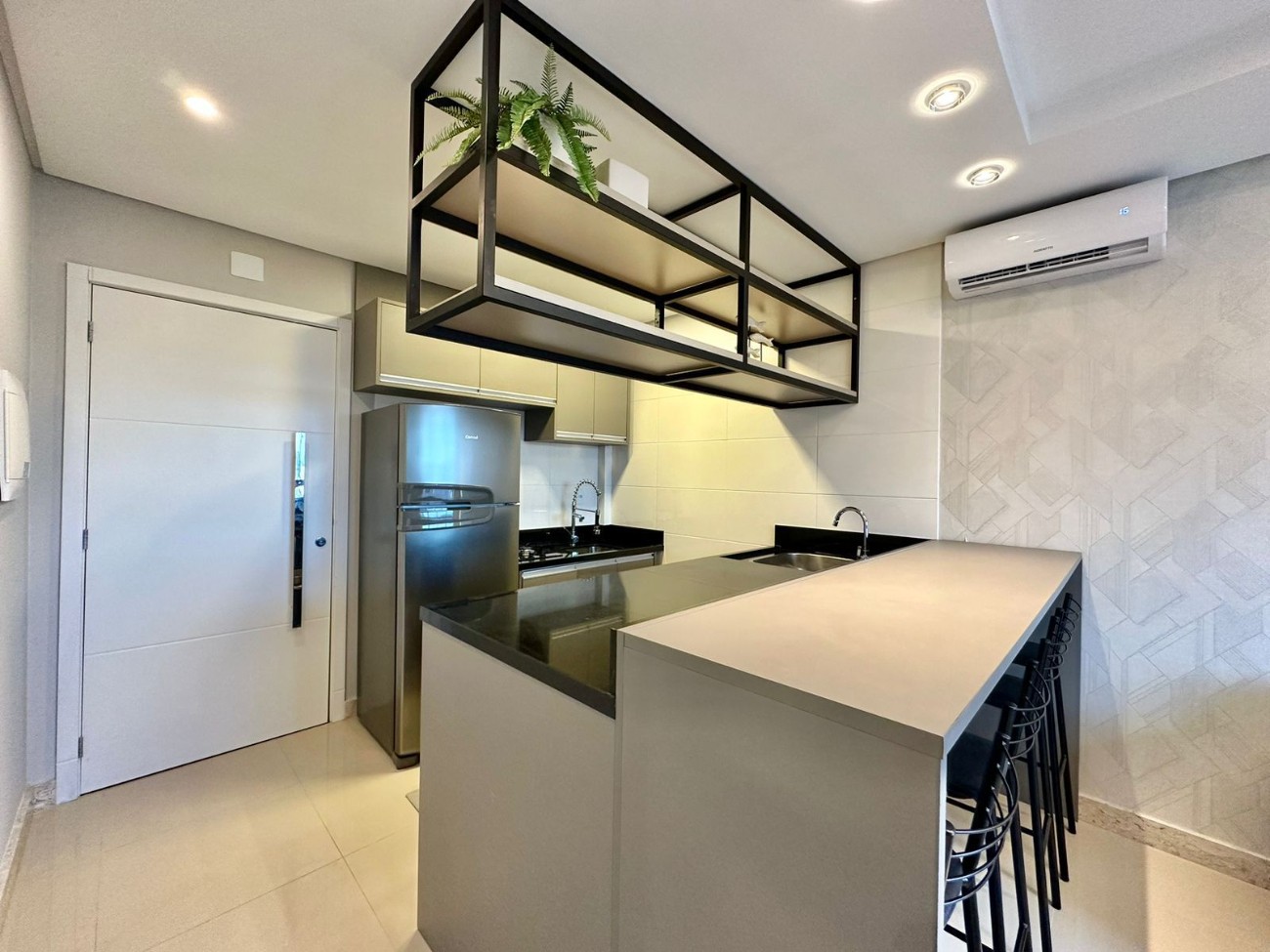 Apartamento à venda localizado no bairro Zona Nova, em edifício de frente para a praça, composto por 1 dormitório, banho social, mobiliado e decorado, com 48,08 m² de área total e 1 box de garagem com 16,62 m². Imóvel pronto para uso.