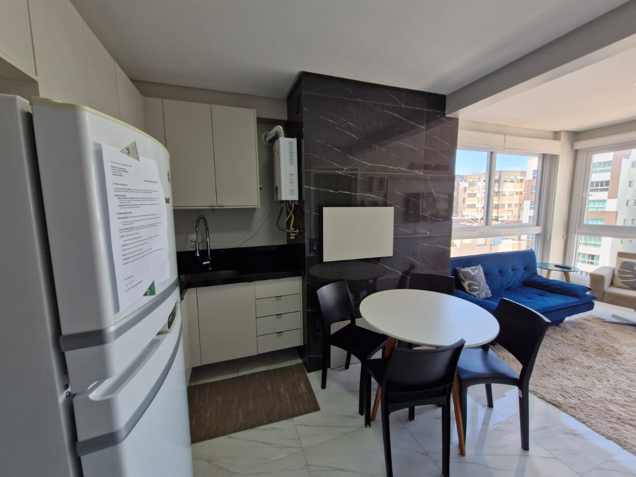 Apartamento à venda localizado no bairro Zona Nova, com sacada de frente para o leste, composto por duas suítes, lavabo, living integrado com estar, jantar e cozinha, além de área de serviço separada, encontrando-se mobiliado e decorado, equipado com eletrodomésticos e splits nos ambientes.