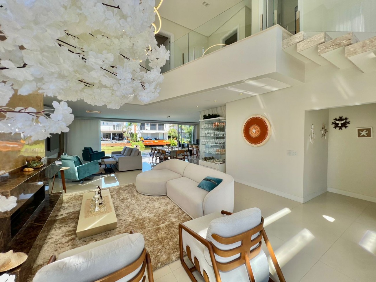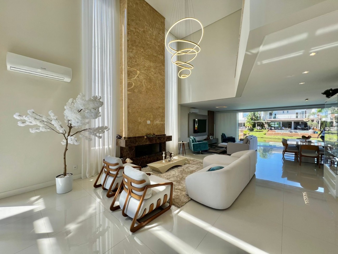 Sobrado beira lago à venda em condomínio fechado, composto por quatro suítes individuais, sendo uma master, duas vagas de garagem cobertas, living integrado aos ambientes de estar e jantar, piscina privativa, lareira e churrasqueira, totalizando 345 m² de área construída.