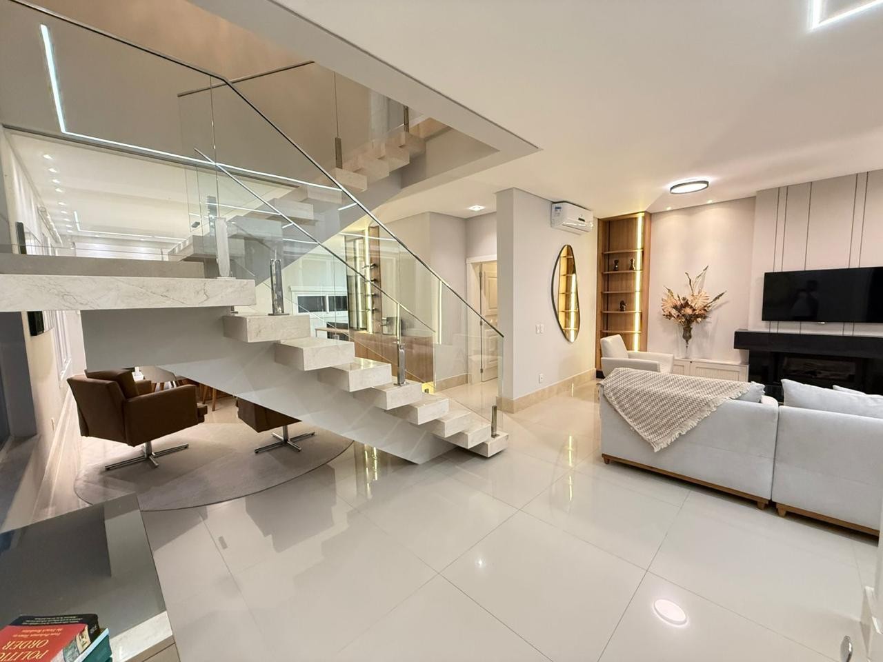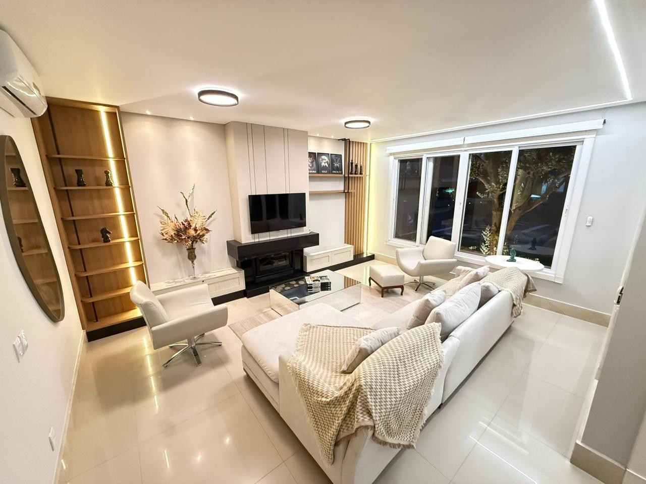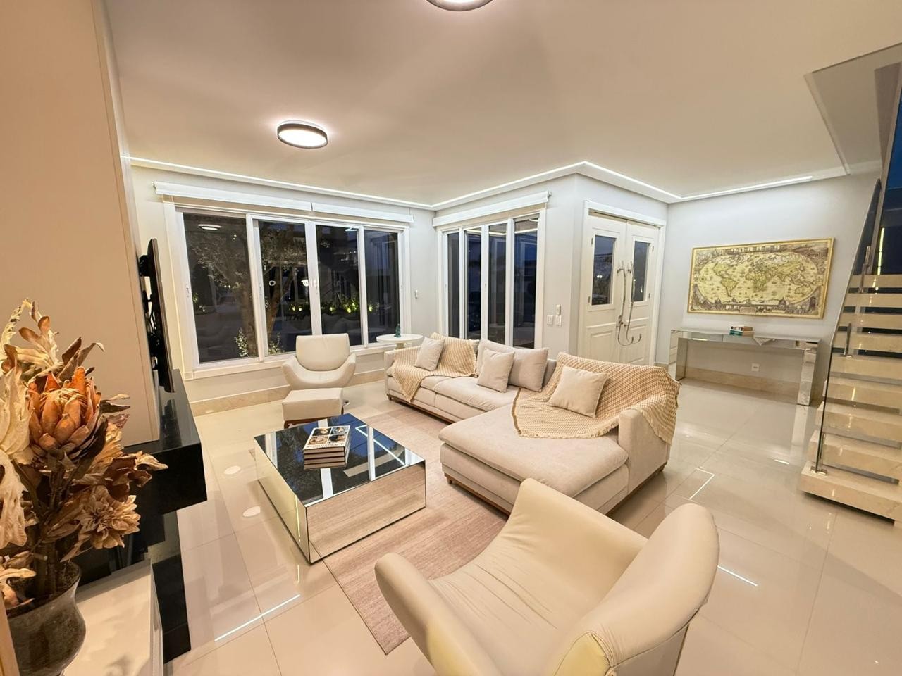 Casa à venda em condomínio fechado, composta por quatro suítes individuais e vaga para dois veículos. O imóvel encontra-se mobiliado e decorado, com eletrodomésticos instalados e aparelhos de ar-condicionado tipo split em todos os ambientes, além de living integrado com churrasqueira e cozinha.