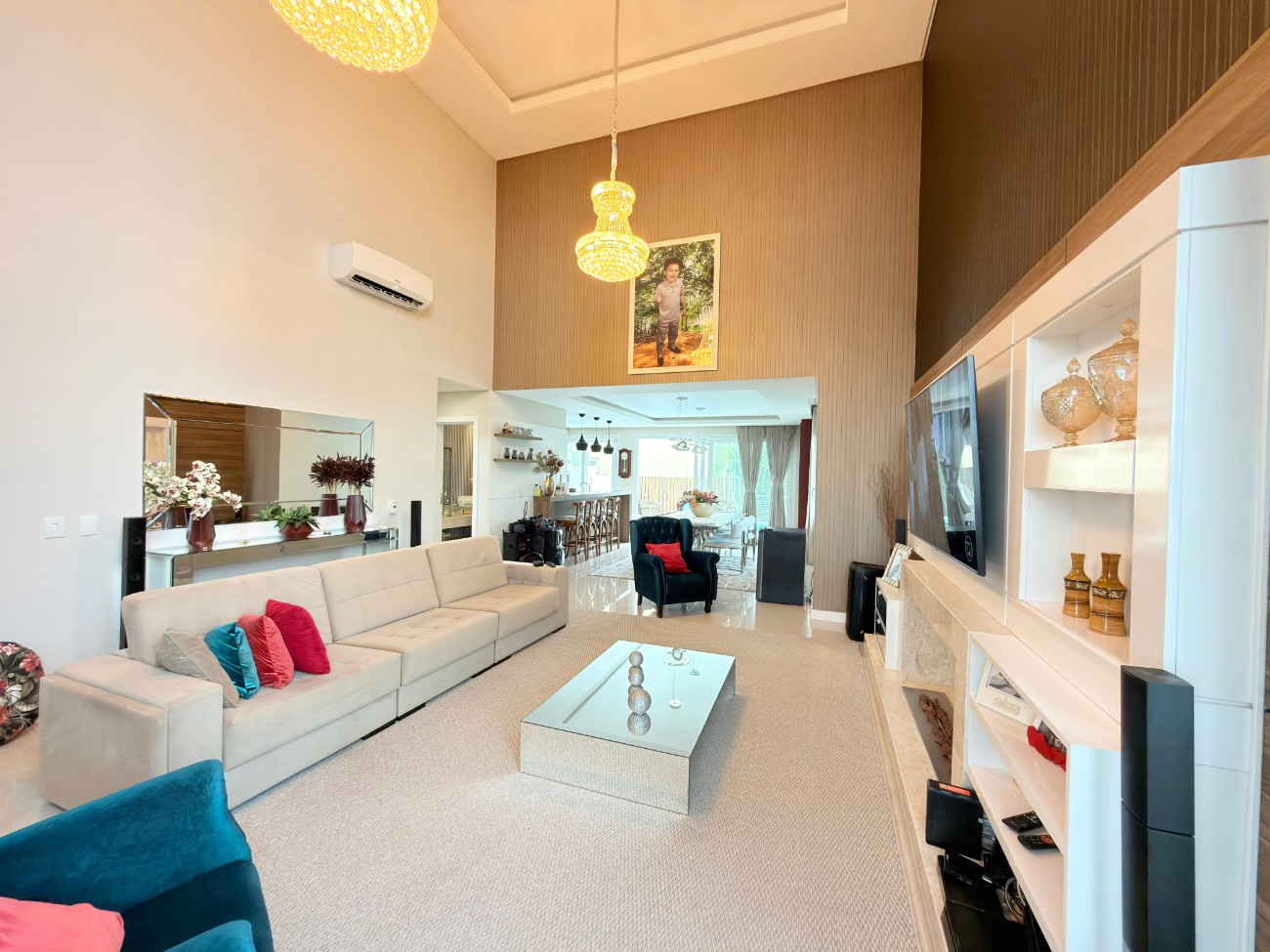 Sobrado de esquina à venda em condomínio fechado, com 230 m² de área privativa, composto por quatro suítes, sendo uma térrea, lavabo e banheiro social. Possui living integrado, lareira e excelente iluminação natural.