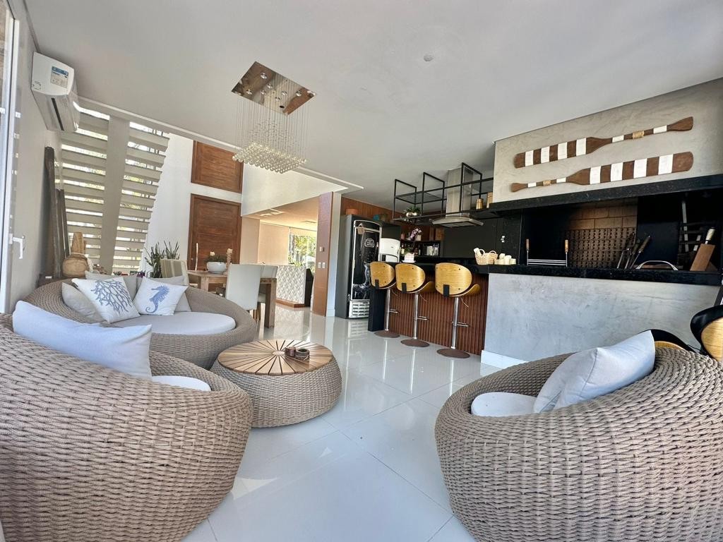 Casa à venda em condomínio fechado, com 240 m² de área privativa e 460 m² de terreno, composta por cinco dormitórios, sendo duas suítes master, duas suítes americanas e um dormitório, com box e splits, além de quatro banheiros, encontrando-se mobiliada.